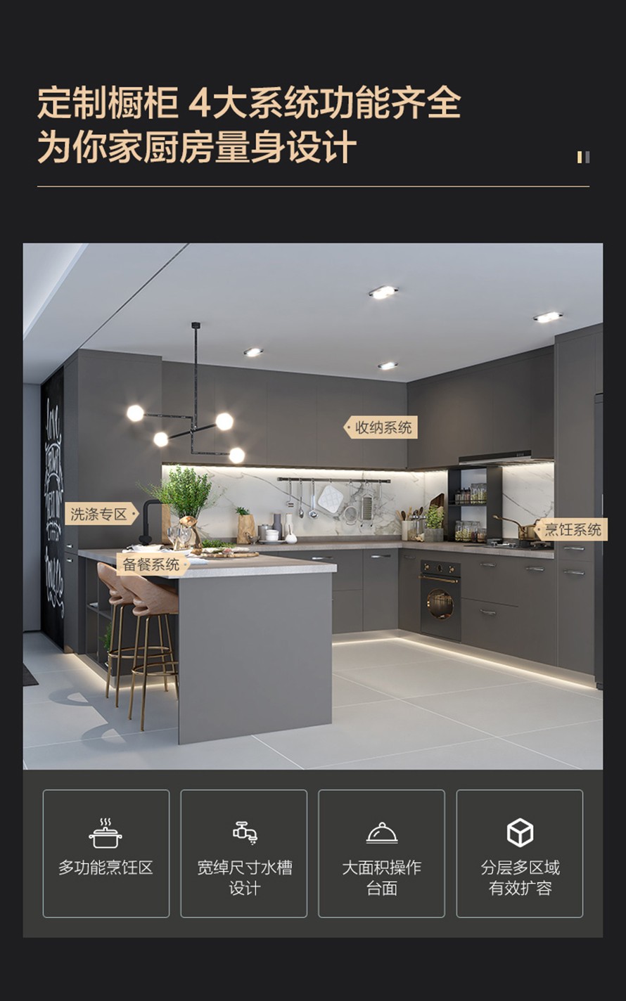 司米橱柜整体定制轻奢厨房拉篮置物架灶台简易多功能厨房柜