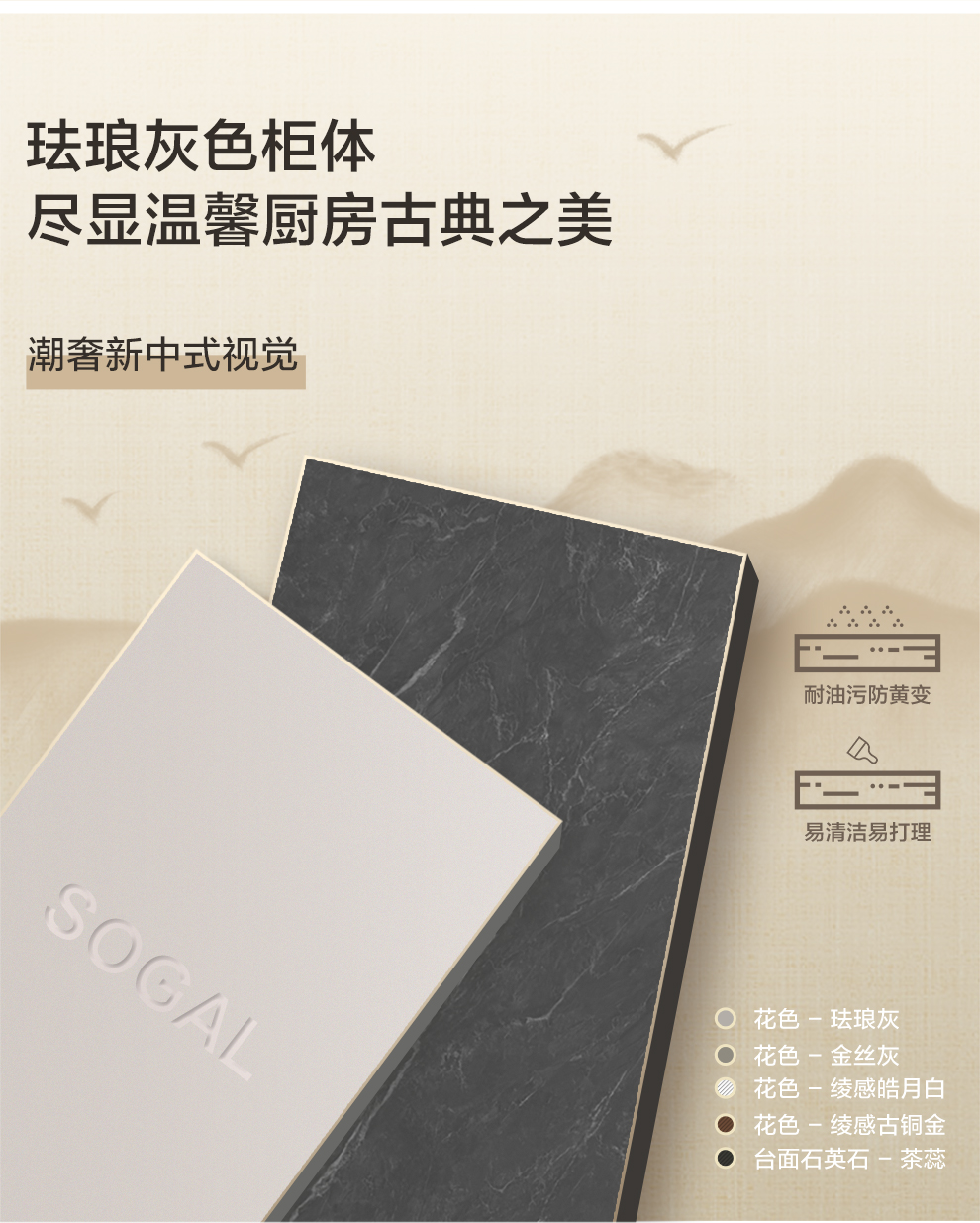 索菲亚橱柜赫拉系列定制灶台厨房整体橱柜家用石英石台面厨柜